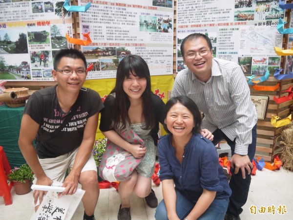 三名社規師游正福(左一)、黃湘晴(右二)和簡建明(右一)與社區居民一起努力,找回丸山的龍舟記憶。(記者簡惠茹攝)